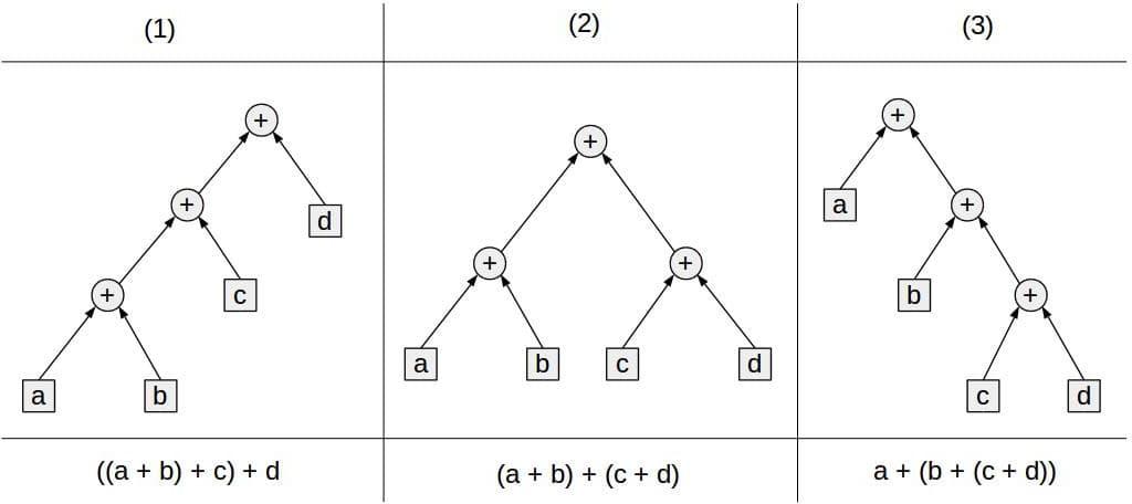 Now the question is: how do we evaluate this expression? Since addition is associative, we have multiple options, all of which are valid:
