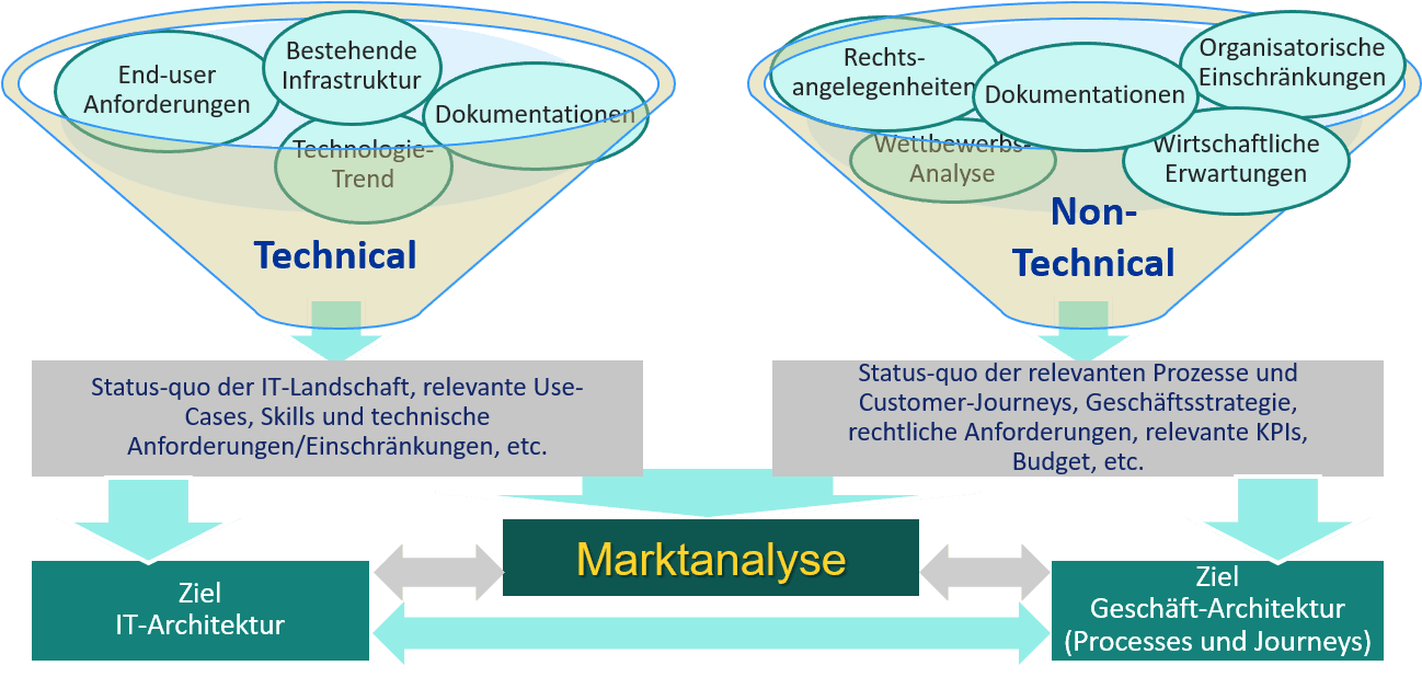 Requirement collection and evaluation cannot be regarded as a standalone step. It means it is not an activity that can be carried out after or before certain phases and be resolved. Evaluation of tools should be performed along with with collecting and refining requirements. Market analysis is nothing but an iterative process that impacts both technical and business architecture and requirements and at the same time is influenced by them.