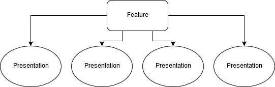 Presentation components do not have to be identical components. The feature component could hold a range of different presentation components related to the same feature.