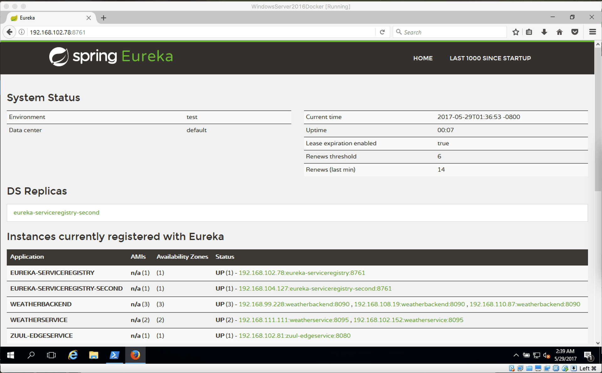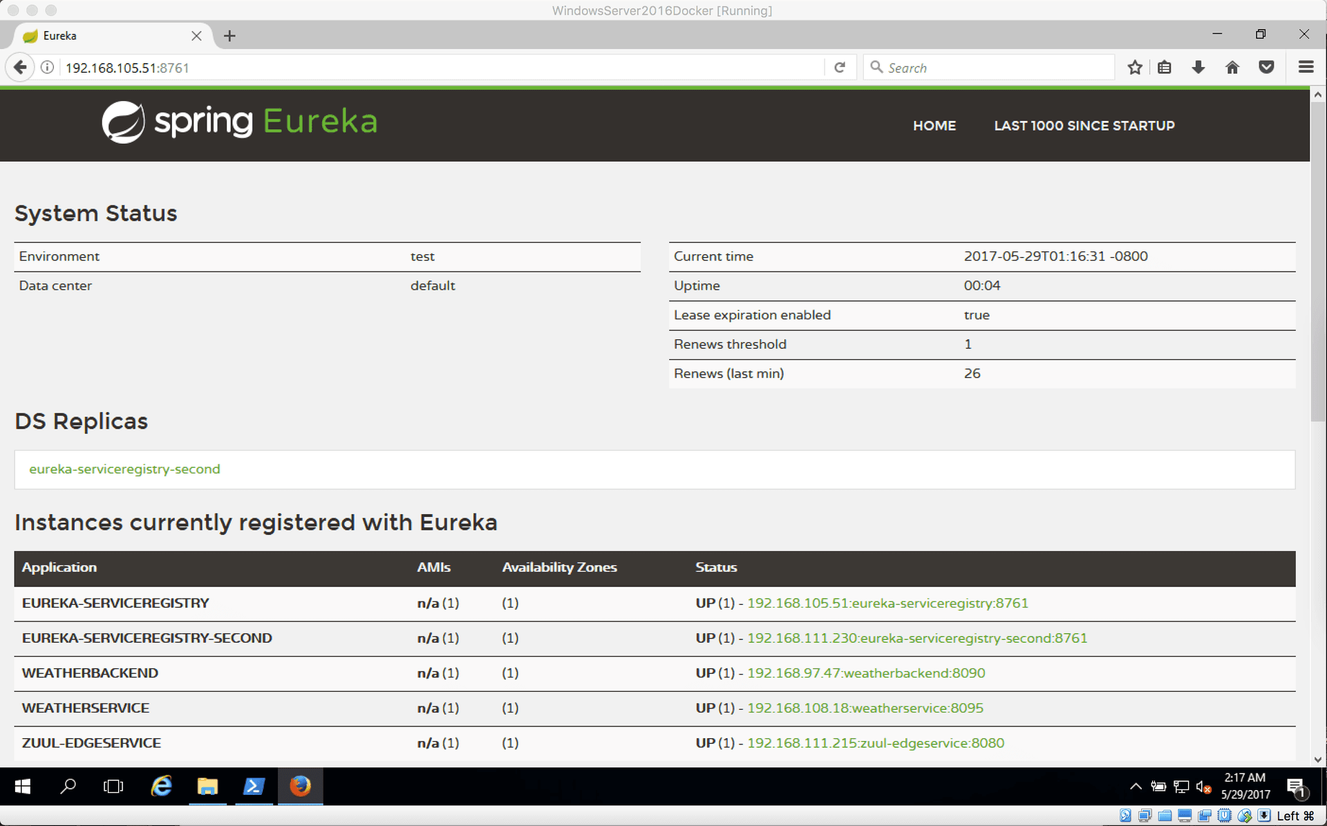 And with Docker Compose we´re able to easily manage and scale our services on the Windows Docker host, without giving away the advantages of Ansible as our core Continuous Delivery glue for all our apps. Comprising that all we´ve put together Spring Boot apps with Spring Cloud Netflix support on Docker Windows Containers with Ansible. Really cool!