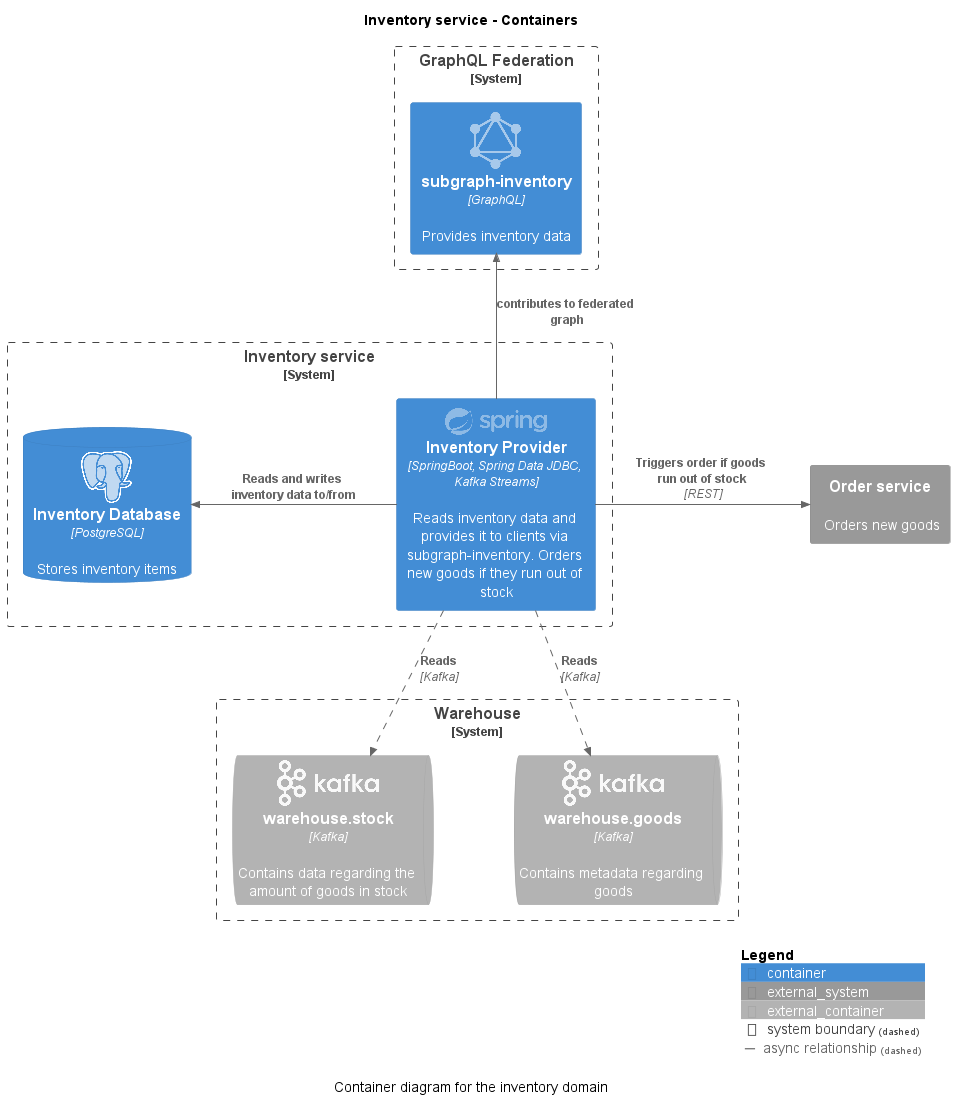 Let's have a look back at the container diagram of the Inventory Service. In part three, we created all elements of this diagram manually.