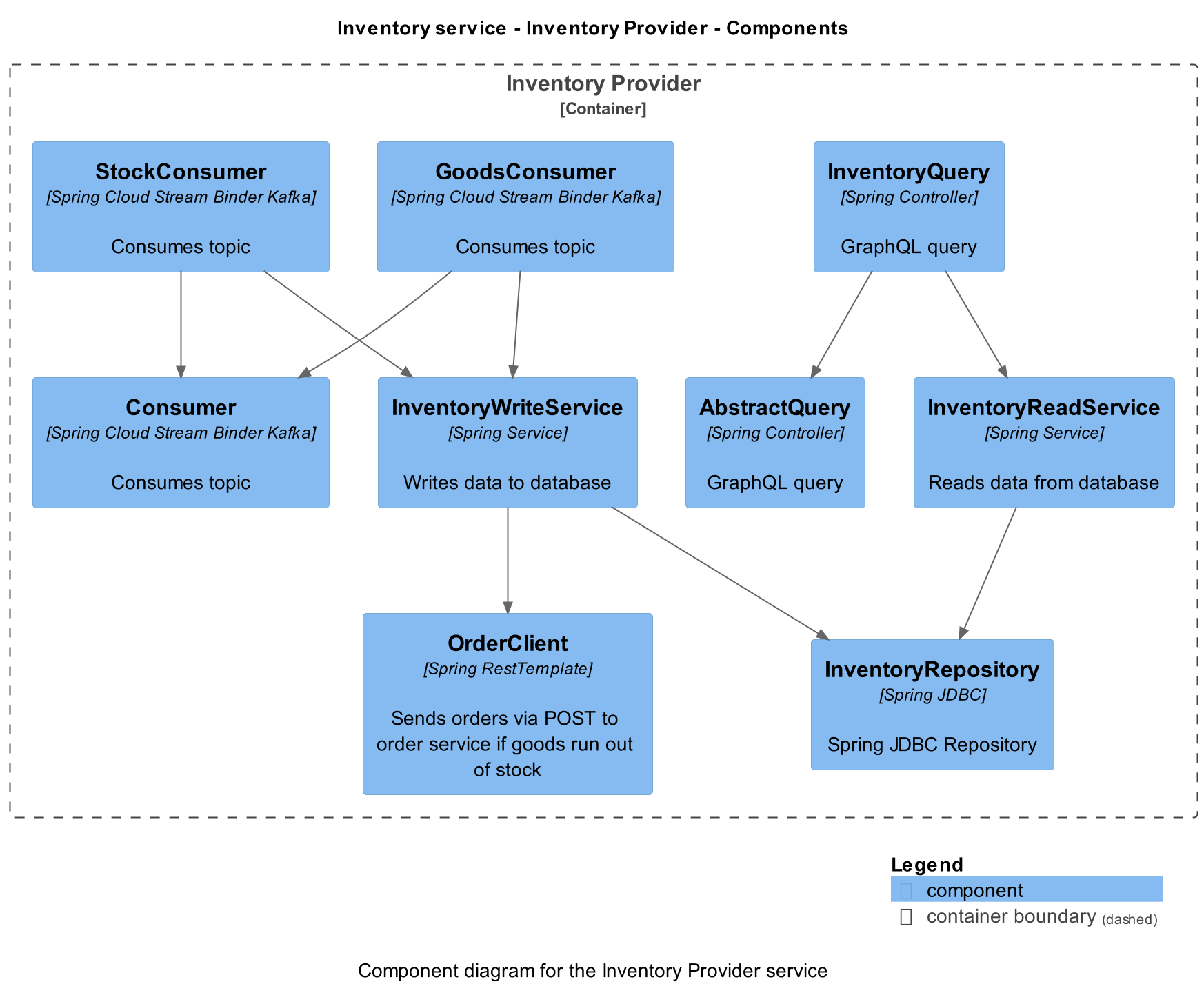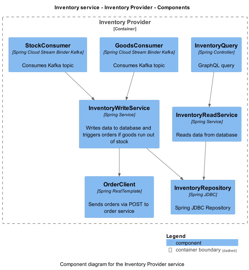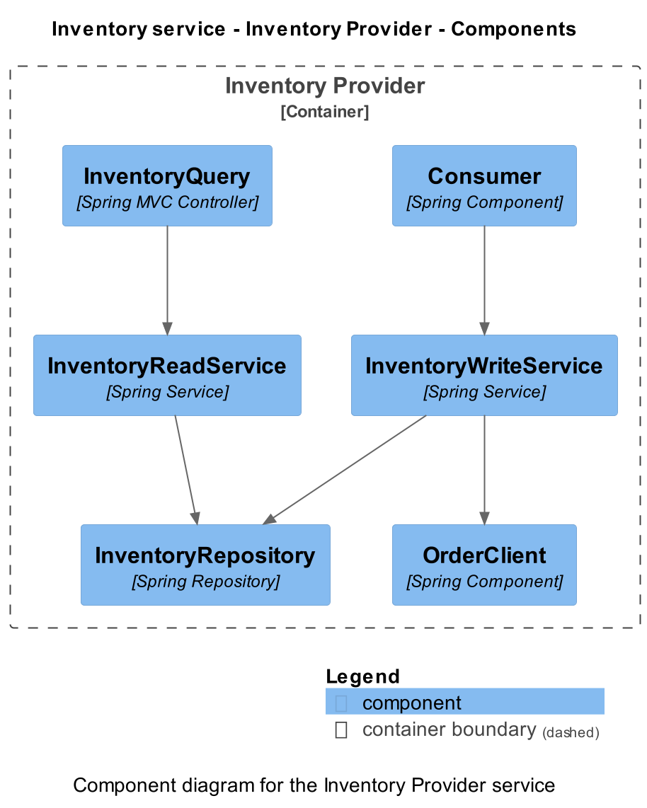 The Component diagram of the Inventory Provider created using the StructurizrAnnotationsComponentFinderStrategy.