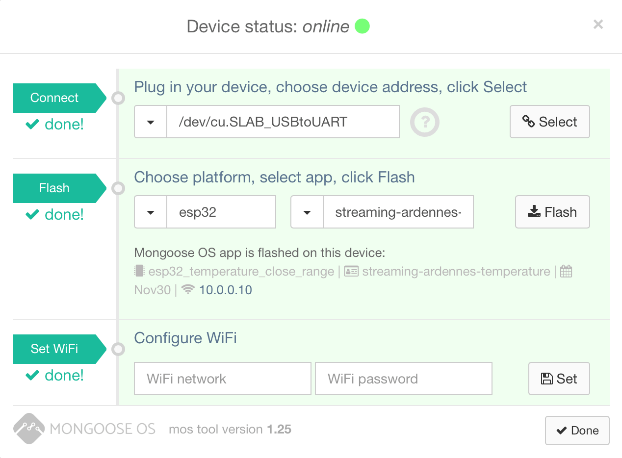 The next thing we need to is is to install Mongoose OS. The software can be downloaded from: https://mongoose-os.com . Install and run the application.