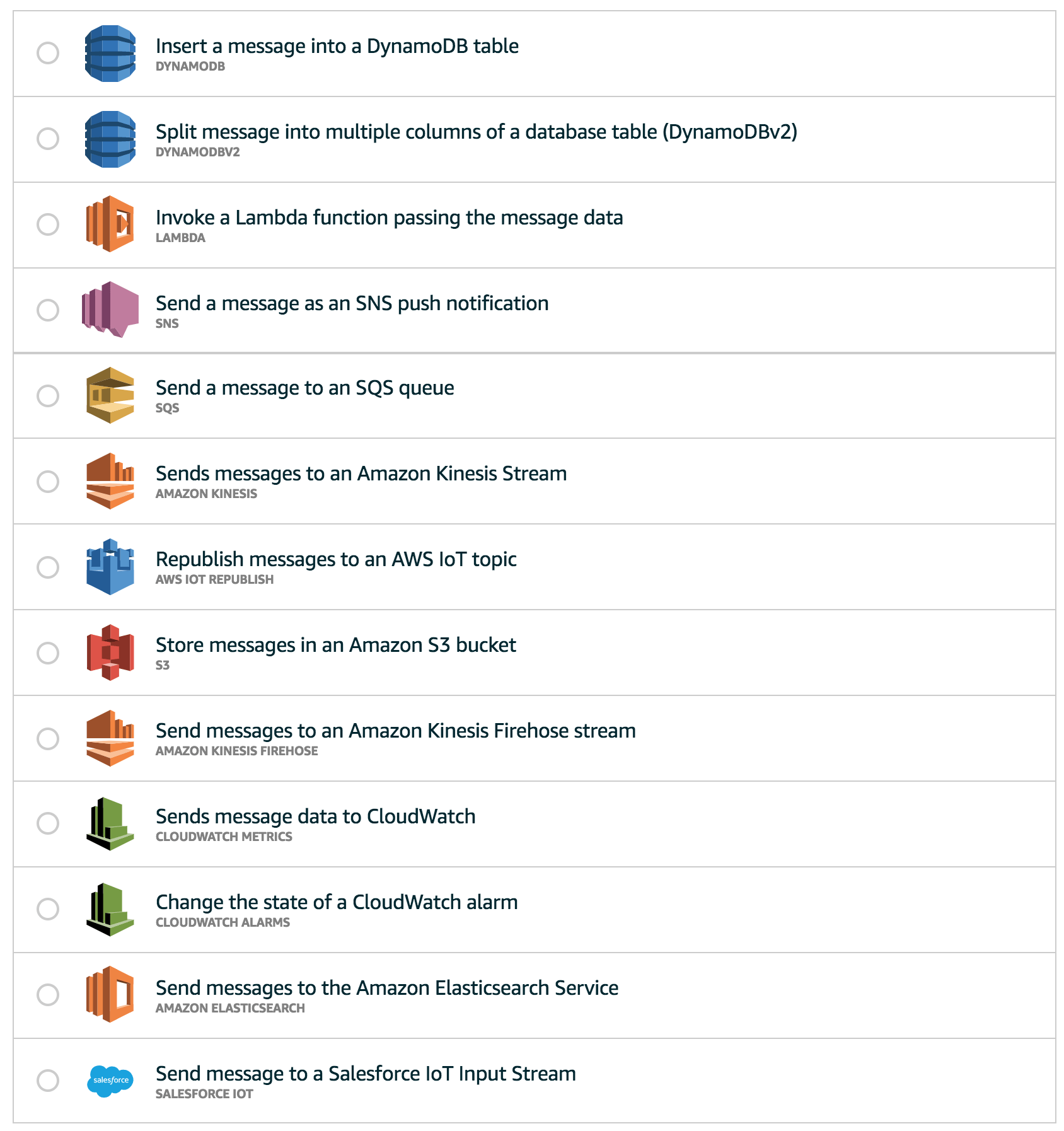 AWS IoT to AWS SQS is just one of the many possibilities that work seamlessly with another. AWS IoT offers multiple integrations with other AWS services. In the figure below there is a complete overview of the services which have an integration with AWS IoT.