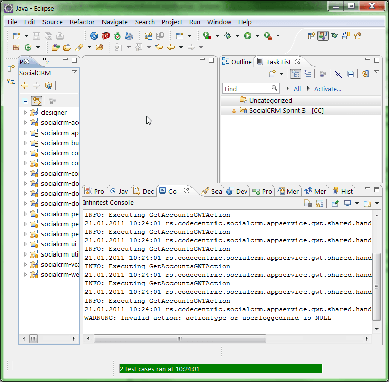 All in all, Infinitest gives a quite mature impression. Even with larger workspaces, the tool works well. One interesting source is the blog entry about Infinitest written by Alex Ruiz.