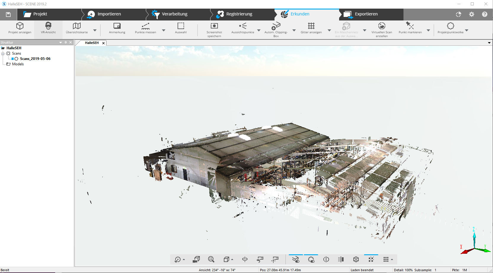 We planned to start with Meshlab but it turned out that it might be easier to open the customer’s data in his orginal software Faro Scene .