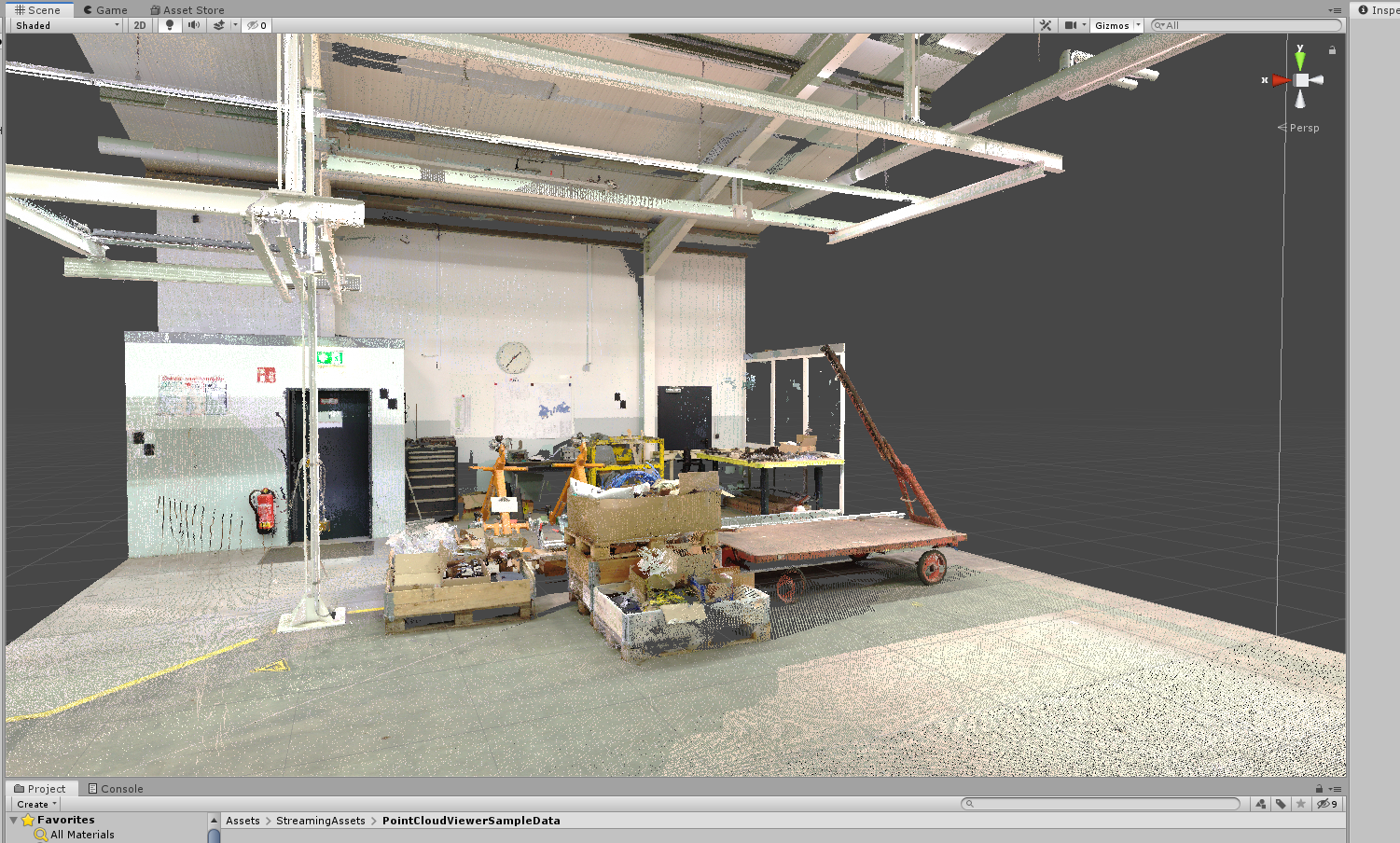 Since our focus customers require actual rooms as VR environments, we need to be able to digest and prepare point clouds with sometimes billions of points as Unity scenes. Our testing data contained 500.000 points for a small production site of our customer. There are several approaches to work with point clouds as suggested by Marten Krull (vermessung3d.de ):