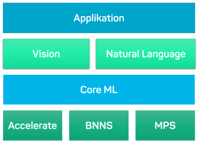 Core ML uses Accelerate , Basic neural network subroutines (BNNS) and Metal Performance Shaders (MPS) libraries, which primarily cover low-level neural network, inference, CPU, and GPU operations. These libraries greatly facilitate access to machine learning on iOS. Furthermore, Apple has developed the frameworks Vision and Natural Language to perform feature extraction on image and text data. For example, existing models of the Vision library can recognize faces, texts and barcodes on images. Then this information can act as features for your models.