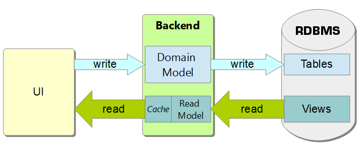 An advancement to this level is to place a Cache in front of the read model. But this is all sugar on the cake. It depends on your application and requirements if you need that. And it comes with a price: You have to implement a rebuild of it, either by means of Domain Eventing or some other messaging solutions. But most important is: You can do that with moderate work and the gain can be tremendous.