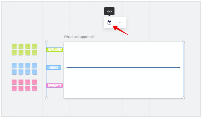 - We are mostly using Miro as a shared workspace/whiteboard. But since it is not a real whiteboard, where you can quickly scribble something, we prepare everything: Each “Canvas”, Dot-Votes, “Post-Its”. They are all there to be copied, directly alongside the “Canvas”. This is much easier than to explain everyone, where to click to get the right element. Especially if you want to e.g. use “Post-Its” with different colors (Events, Highlights, Lowlights ): We put a whole bunch on the side, so that everyone can just grab them.