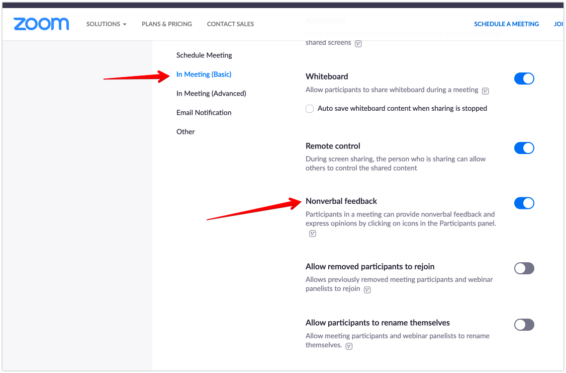 You have to scroll a bit and switch on “Nonverbal Feedback” and that adds some more buttons in the participants view: