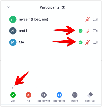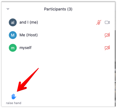 When they click on that hand, they are marked in the participants list for everyone to see. And for the “Host” the participants are sorted by the order in which they raised their hand. So you as the facilitator just have to call them up in the order presented.