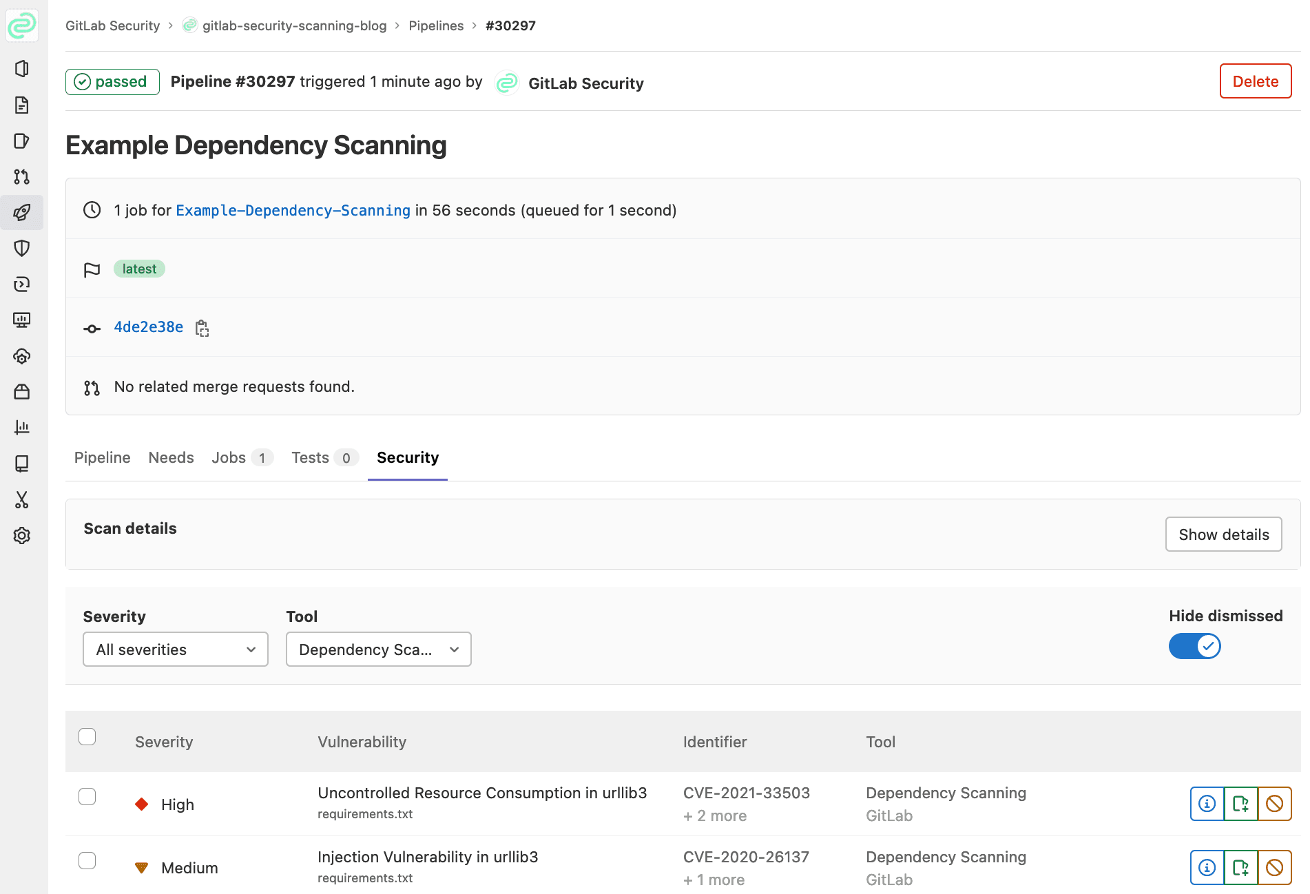 file. Alternatively, if there has been no pipeline so far, create a new one inside your GitLab project. GitLab now is going to run these configured security scans during the next git push