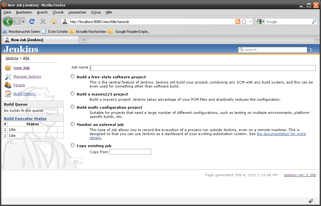 With Oracle taking over Sun the Hudson project was starting to get into political trouble that finally let to the point that the original Hudson developers started a spin-off project from Hudson called Jenkins. I am a technical guy so I do not want to comment on the political aspects of this whole exercise. But I am very well interested how Jenkins feels in comparison to the good old Hudson. I am not expecting too big changes, but let’s have a look.
