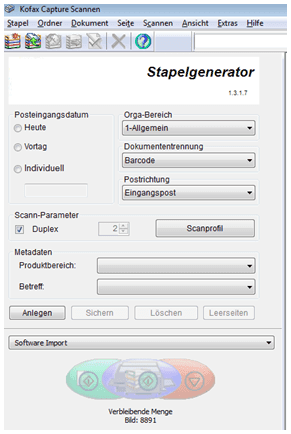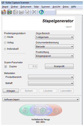 For many customers we have developed a panel for the scan module that is called batch generator. Currently in input management systems with many clients or special requirements concerning the naming of a batch it is possible to wrap these technical demands in a batch generator. The scan operator creates the batches over a simplified GUI.