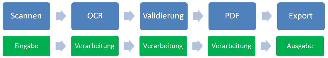 The work is done step by step by so called queues in a predefined sequence. Hereby everything follows the IPO principle. The sequence always starts with the scan module and ends with the export of the collected data (metadata and image files).
