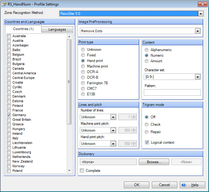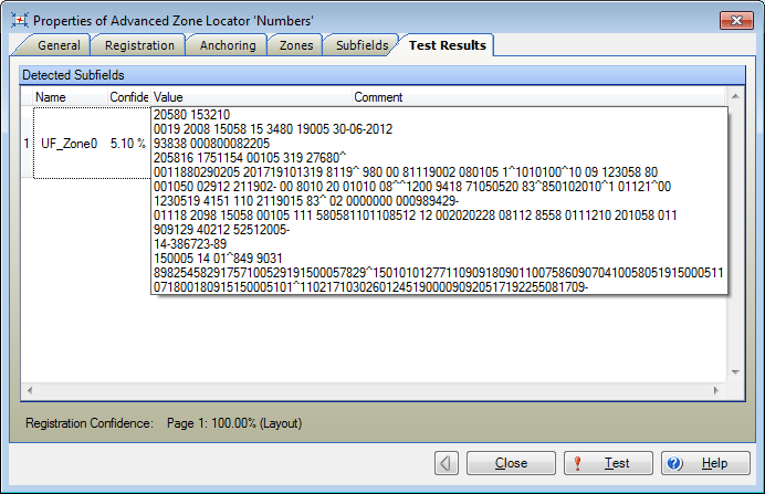 2. From experience the RecoStar Engine reads numerical characters better than the FineReader Engine. Therefore RecoStar is used within the Advanced Zone Locator with a numerical recognition profile [0-9-].