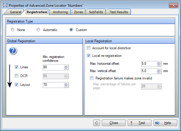 Remove the checkmark at ‘Registration failure makes zone invalid’, as registration will always fail with unstructured documents, and we want to keep the result in any case: