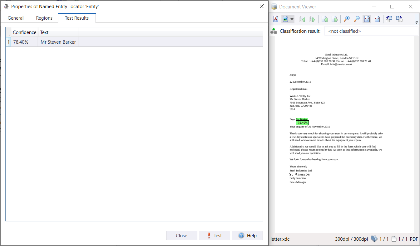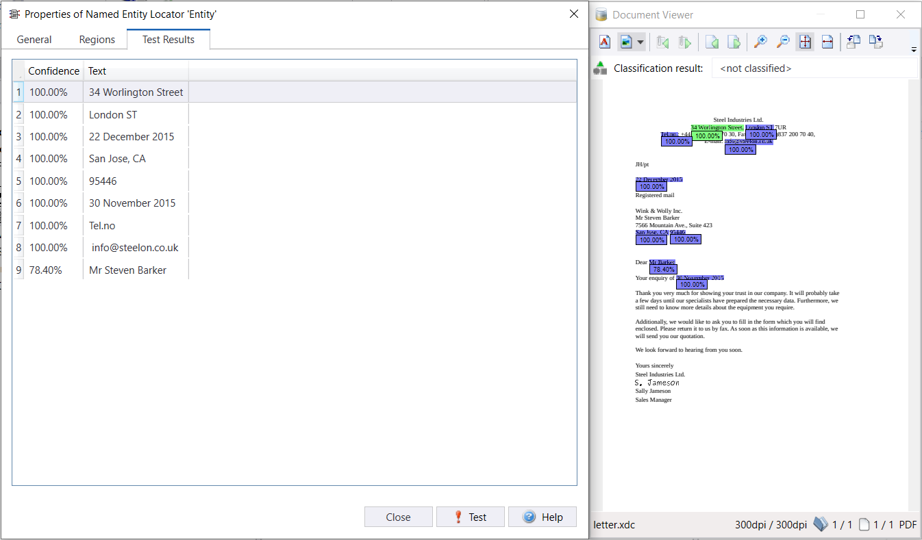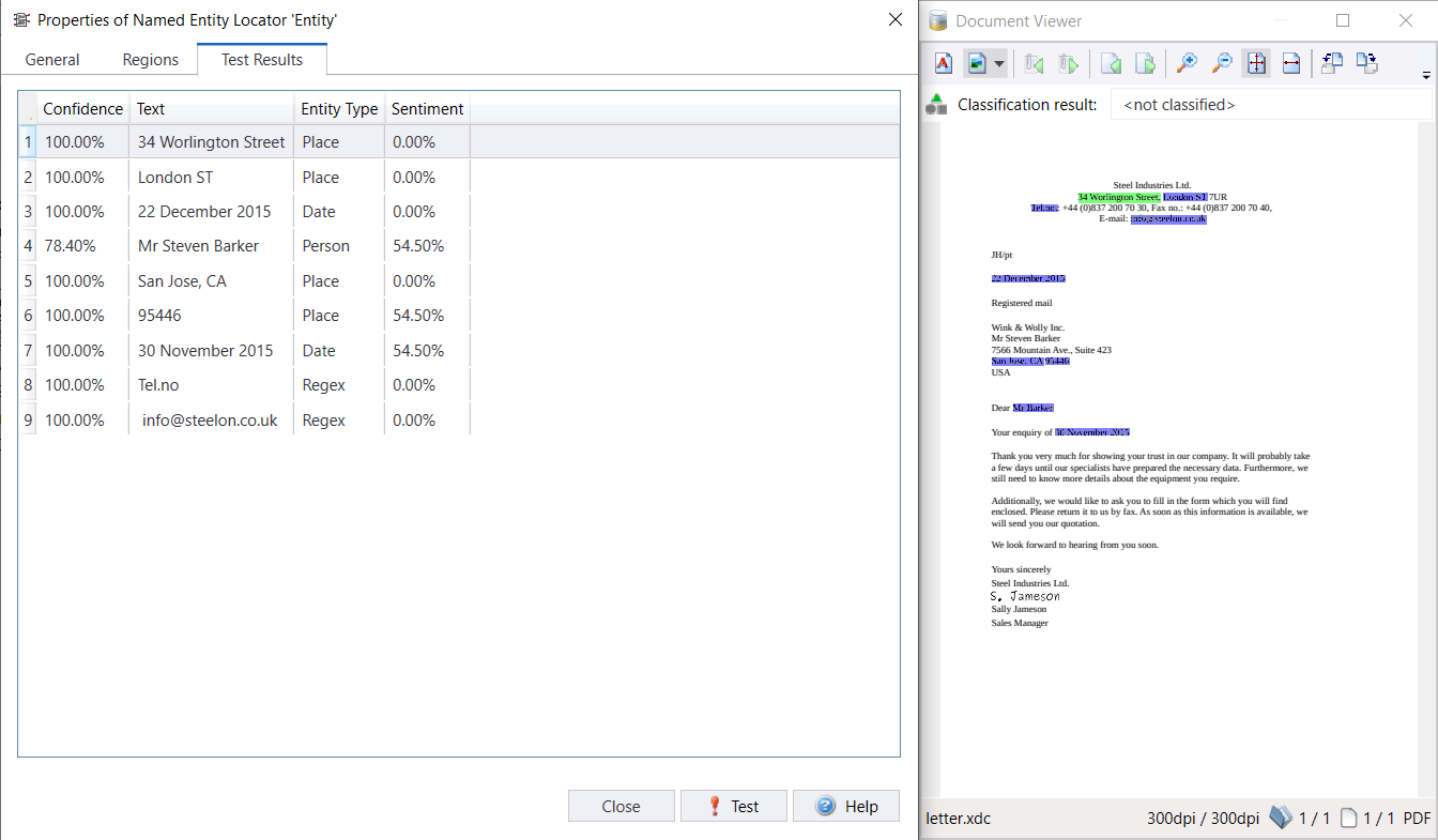 ‘Search Text’ will be searched within the document and ‘Entity Name’ will be returned as the result of the locator in the text column.