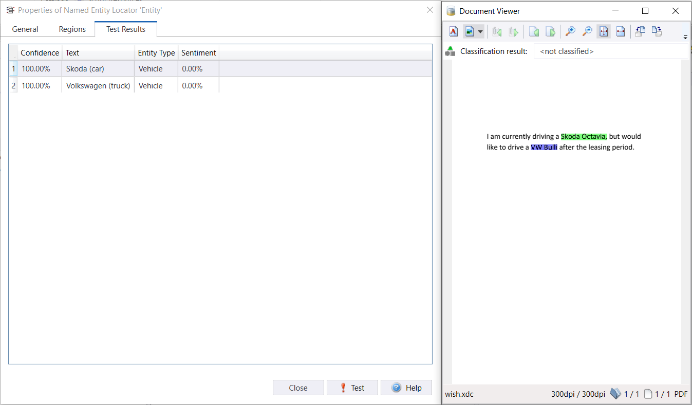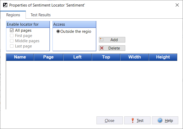 The second new locator (sentiment locator) tries to determine the sentiment of a document. Is there a positive mood within the text or is the document a complaint with a negative wording? The sentiment locator cannot be configured despite the region settings known from the other locators.