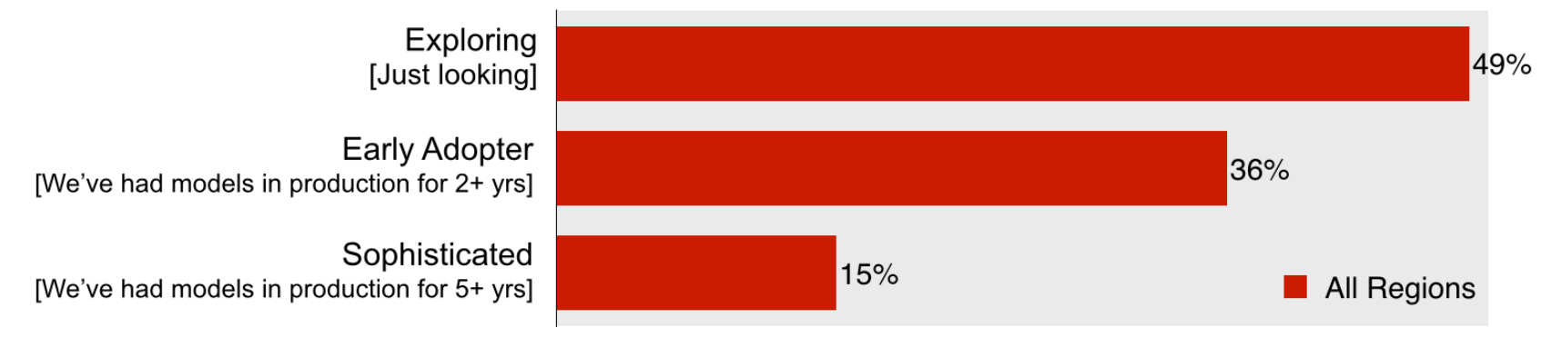 A recent survey from O`Reilly (August 2018) shows that 49% of the participating organizations are experimenting with machine learning, but do not have models in production.