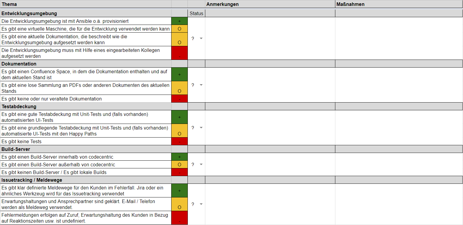 Fig. 2: Extract of a checklist used at codecentric