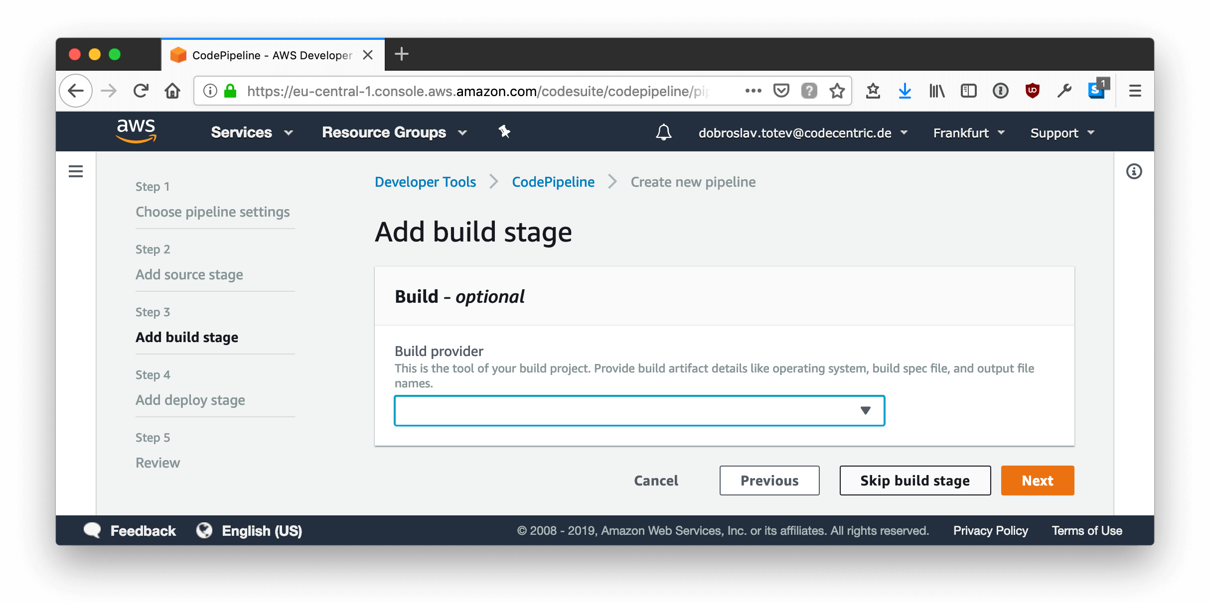Setting up CodePipeline for this project is easy, because no actual building is required. The “code” is being checked out of the GitHub repository and pushed into the previously configured S3 bucket ultimately replacing its contents.