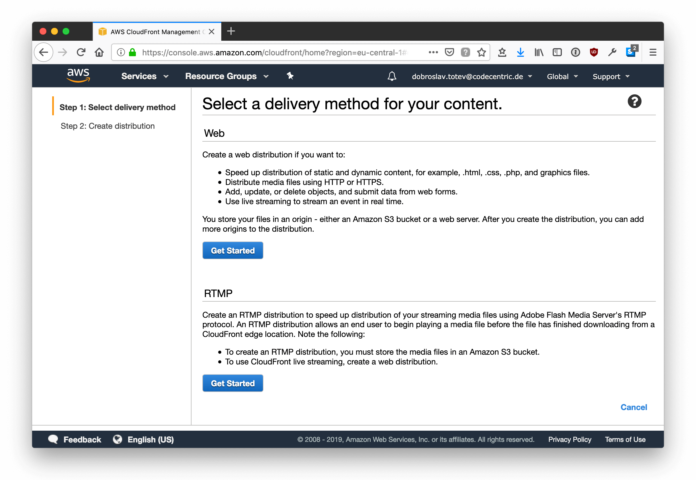 Let’s start by creating a new CloudFront distribution and choose the web delivery method: