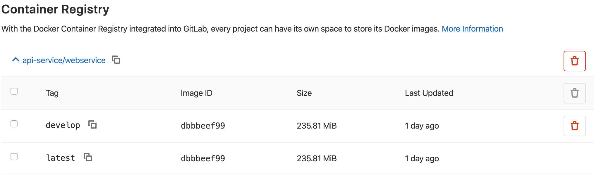 For a simple start, we use a direct relationship between the branches in the project’s Git repository and the Docker image tags, so a “master” branch will result in a new image tagged as “master”.