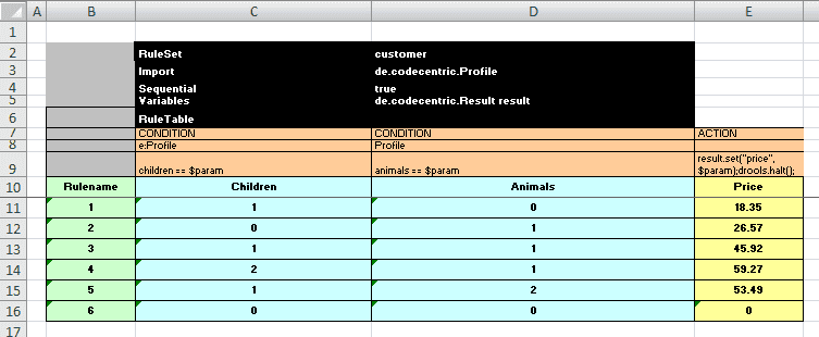 1global Productportfolio products; 2 3rule "children" 4when 5 Profile( age <= 15 ) 6then 7 products.recommend( "PRODUCT_A", 5 ); 8 products.recommend( "PRODUCT_B", 0 ); 9 products.recommend( "ANOTHER_PRODUCT", 3 ); 10end