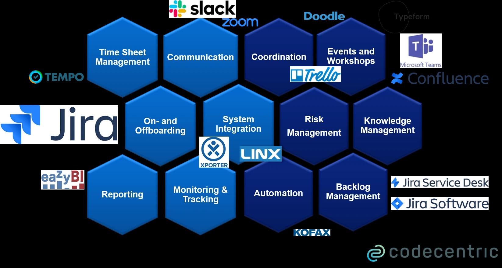 Having laid out a variety of tools for project management, it is worth mentioning that in many cases, a combination of Jira, Slack and Confluence has proven to cover the majority of project-related domains in complex situations. While Confluence provides a platform for knowledge management and Slack covers the communication part, Jira, empowered by a selection of helpful apps, can take care of the steering, reporting, notifications, risk management and so on.