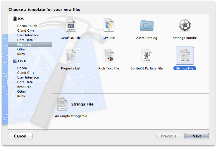 Adding localized files in Xcode