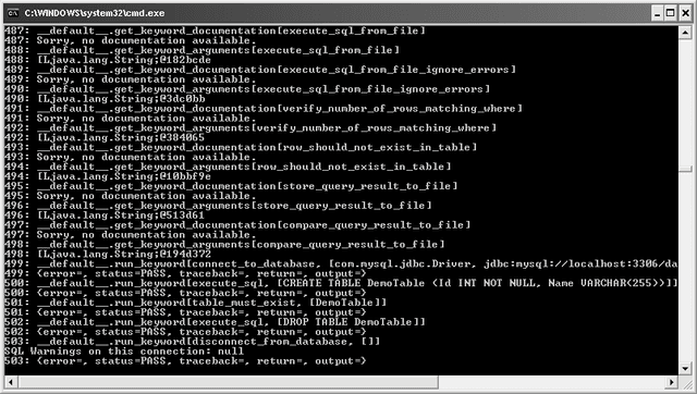 Selenium always requires a running Selenium Server. That could be run on the same machine where the Robot Framework is running, but it can also be any other Server that can be reached via TCP/IP. The same holds true for the Database Library Server. DatabaseLibrary could be used without RPC, but as then we would be forced to use Jython let’s use it as a server as well. Of course locally all these servers will be running on the same machine (namely your PC). In some official testing environment that is typically setup for a project it is often the case that the Robot Framework is running on some Linux box together with the CI-server. Then the Selenium Server is running on some Windows-Server, as you would like to test with browser versions that are close to those used by the end users. The DatabaseLibrary Server could then again run on the CI-Server. That does not hurt.