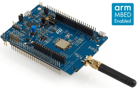 • Low performance and low energy consumption: STMicro B-L072Z-LRWAN1: LoRaWAN technology kit with an STM32L072CZ ultra-low-power MCU with 32 MHz, 20 KB of RAM and 196 KB of flash, but with an on-board LoRaWAN and Sigfox unit.