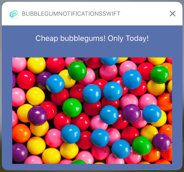 Let’s schedule our cheap bubble gums notification with UNUserNotificationCenter class:
