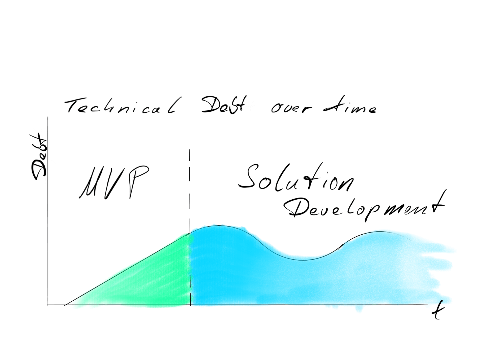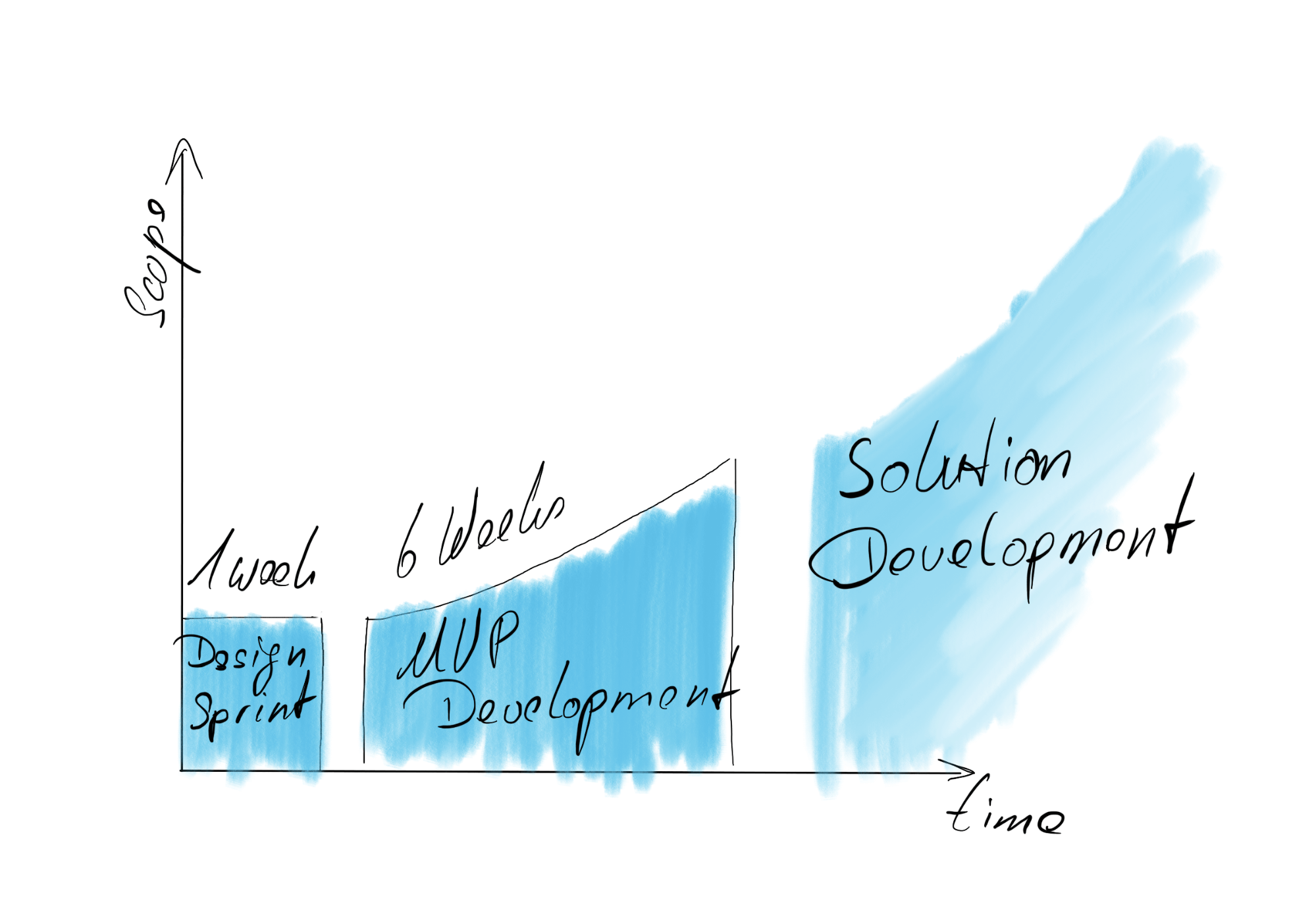 Solution Development stage is to convert an approved MVP into a final solution and bring it into production. The objectives at this stage are to find out what inherently distinguishes solution from MVP development. With MVP, the goal is to build a minimal set of features that enable the customer to experiment with the idea itself. To achieve this goal during the limited period of six weeks, a healthy amount of technical debt is consciously allowed in the MVP. In Solution Development after that, not only new features are developed, but also the technical debts are iteratively reduced and the MVP is grown up into a production-ready solution.