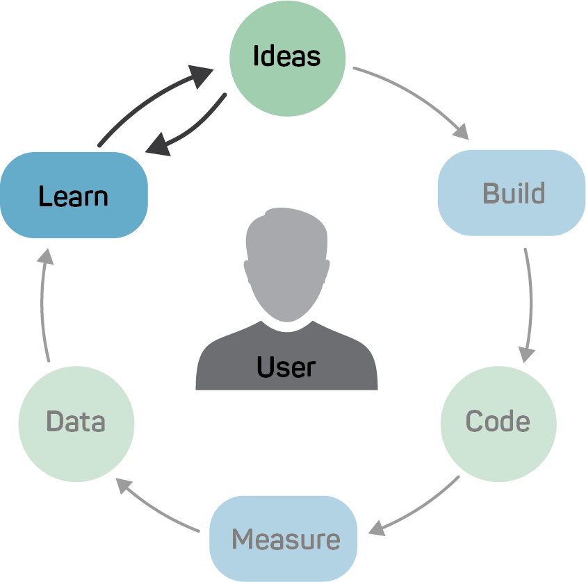With new products, however, there is a so-called “The chicken or the egg?” causality dilemma: Without a ‘theoretical’ solution, no data can be collected, and without data, no new hypotheses can be generated. The Design Sprint approach takes a short circuit to bring end-users, domain experts, and stakeholders together, draw a clear picture of the extent of the problem at hand, prototype a solution, and learn from end-users before a single line of code is written. In the language of the lean software development, it learns directly from the business hypothesis (ideas), without much of data gathering.