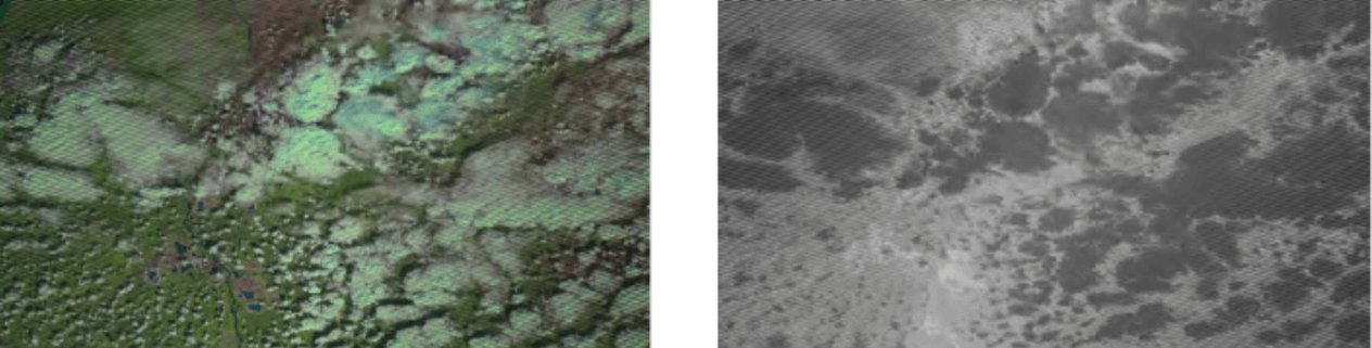 Satellite image (left) and thermal image (right) of a forest fire [Crowley et al., 2018 ]