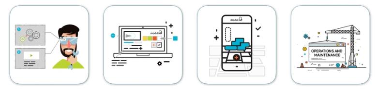 Vom Autorensystem über einen Webclient zum Verwalten der 3D-Modelle, Verbinden mehrerer 3D-Objekte zu einer Konstruktion bis hin zu Wartung und Betrieb bietet das modulAR-Ökosystem eine komplette Unterstützung für Ihre individuelle Lösung.