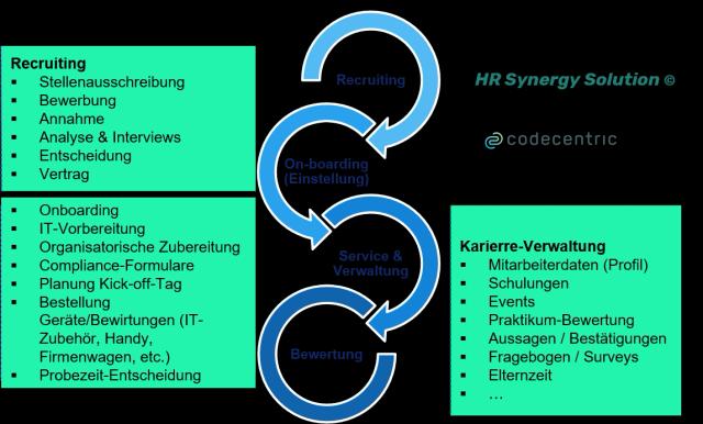 Im Kontext der HR wird zum Beispiel der Einstellungsprozess (Recruiting) als die Grundlage angesehen, die Verfahren wie die Verwaltung von Stellenanzeigen, das Screening von Bewerbungen, die Planung von Vorstellungsgesprächen, die Vorbereitung von Verträgen und das On-Boarding miteinander verbindet.