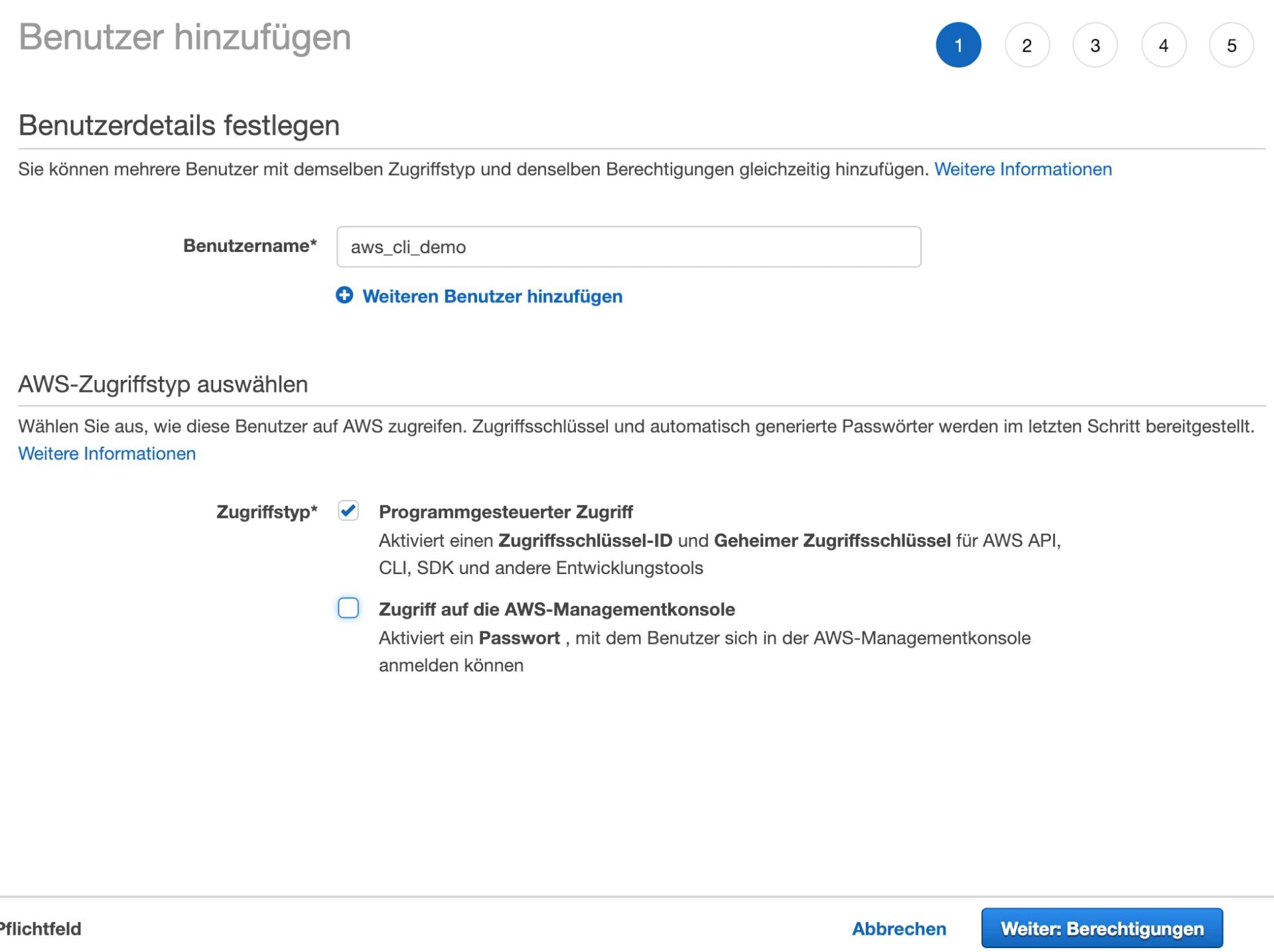 Damit die CLI erfolgreich die Lambda aktualisieren kann, muss man ihr erst die notwendige Berechtigung erteilen. Dazu legt ihr zunächst im AWS Identity and Access Management (IAM) einen Benutzer an, der für den Upload verwendet wird.