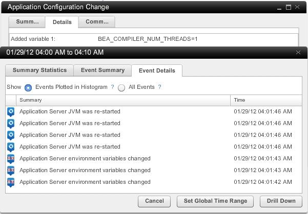 Hier ein Screenshot aus AppDynamics, der diese Konfigurationsänderung dokumentiert.