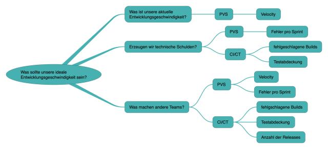 Sobald wir die Bedeutung der einzelnen Werte verstanden haben, werden wir in die Lage versetzt komplexere Metriken durch Kombination dieser Werte und auch durch Hinzunahme weiterer Datenlagen zu entwerfen. Doch dazu müssen die neu geschaffenen Daten erst in eine normalisierte Form gebracht werden. Auch hier können Mindmaps den Herleitungsprozess unterstützen.