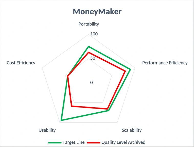 Mit einem schlanken aber aussagekräftigen Mission Statement an der Hand ging es im nächsten Schritt darum, herauszufinden, welches die wichtigen Top 5 Qualitätsziele von MoneyMaker sind und deren ideales Erwartungsniveau festzulegen, d.h. wie MoneyMaker im optimalen Fall sein sollte. Qualitätsziele (vielleicht besser als NFR Nichtfunktionale Anforderungen bekannt) sind grundlegende Aspekte eines Software Systems, die ein Architektur Review üblicher Weise in einem sehr frühen Schritt betrachet.