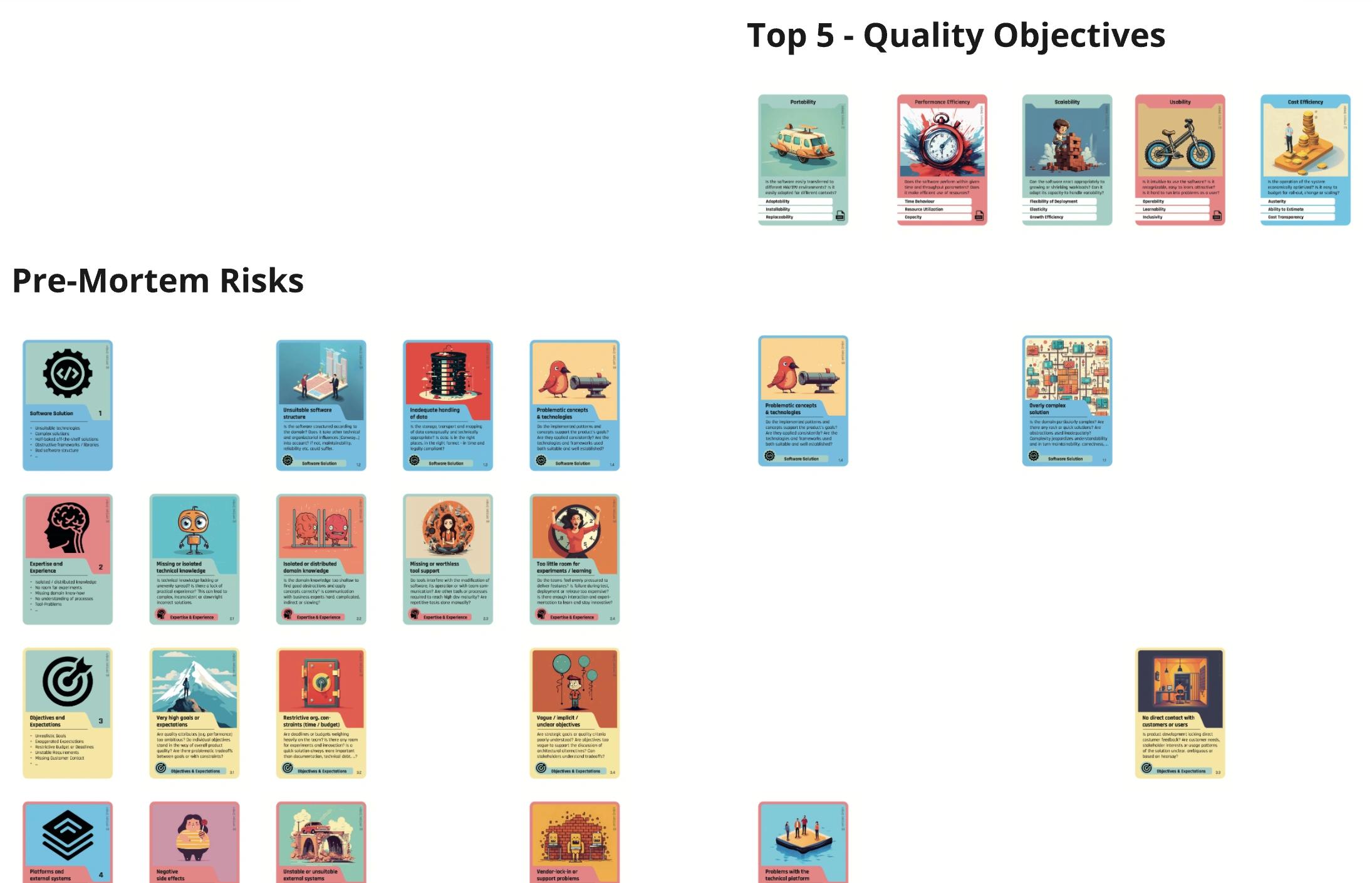 - Im ersten Schritt wurden potenzielle Risiken identifiziert und den jeweiligen Qualitätszielen zugeordnet - dafür haben wir uns max. ca. 10 Minuten pro Risikogruppe Zeit genommen: