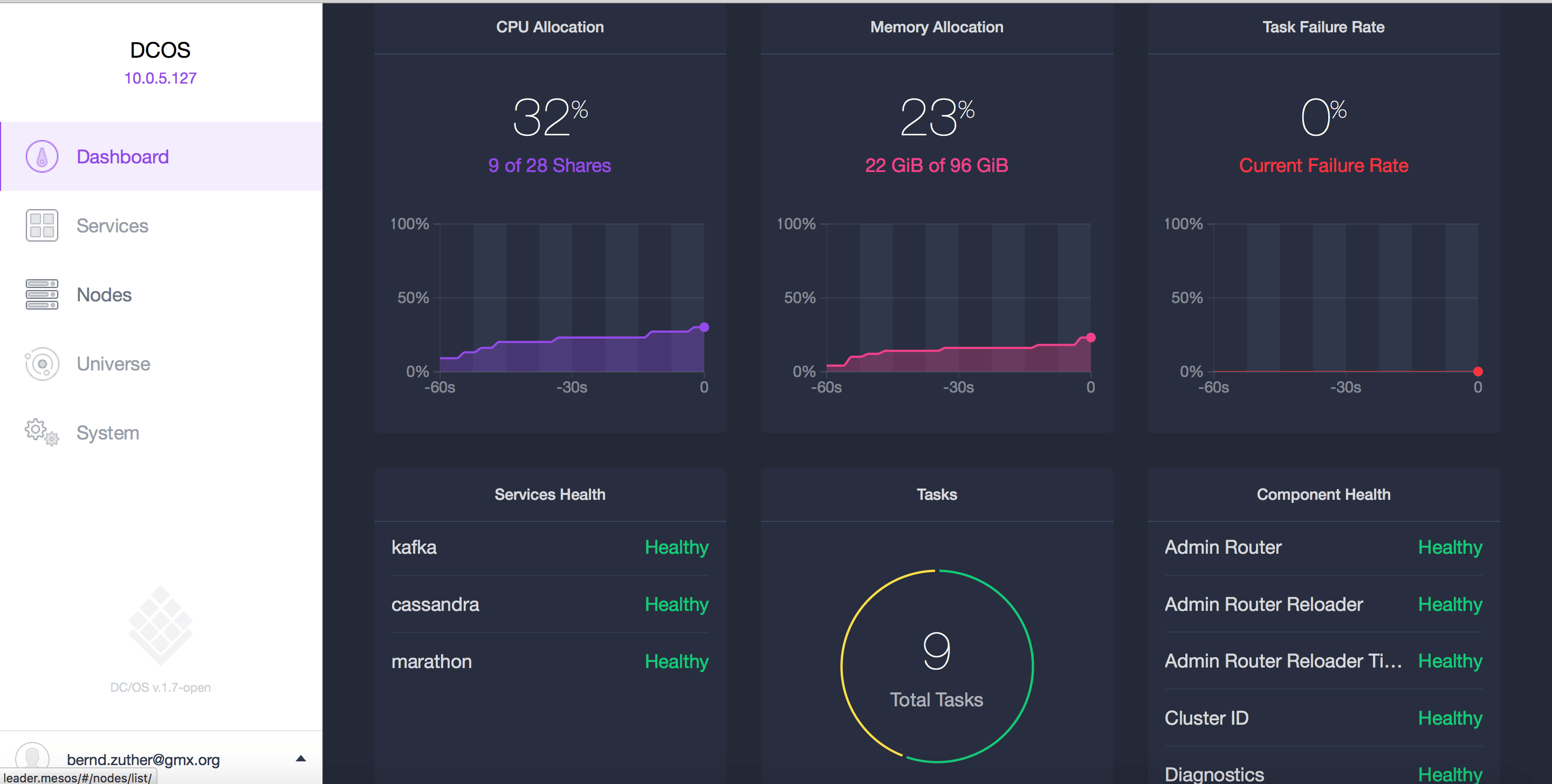 Wie man sieht ist das Einrichten eines DC/OS-Cluster sehr einfach und geht sehr schnell. DC/OS bietet eine perfekte Grundlage, um die SMACK-Plattform bestehend aus Spark, Mesos, Akka, Cassandra und Kafka aufzubauen. Dies beschreibt mein Kollege Florian Troßbach in seinen Artikel „The SMACK stack – hands on!“ . Es kann aber auch einfach nur benutzt werden, um verteilte Anwendungen auszuliefern. Dem Anspruch, das die Benutzer die unterschiedlichen Server des Rechenzentrums wie ein einzelnes Gerät steuern können, wird es auf jedenfall gerecht.