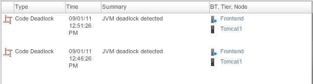 Sobald der AppDynamics Agent in einer JVM läuft, beobachtet er die Thead Aktivität und diagnostiziert Deadlocks völlig automatisch. Es ist keinerlei Konfiguration notwendig, und verursacht keinen nennenswerten Overhead, weshalb es sich insbesondere für Produktionsysteme eignet.