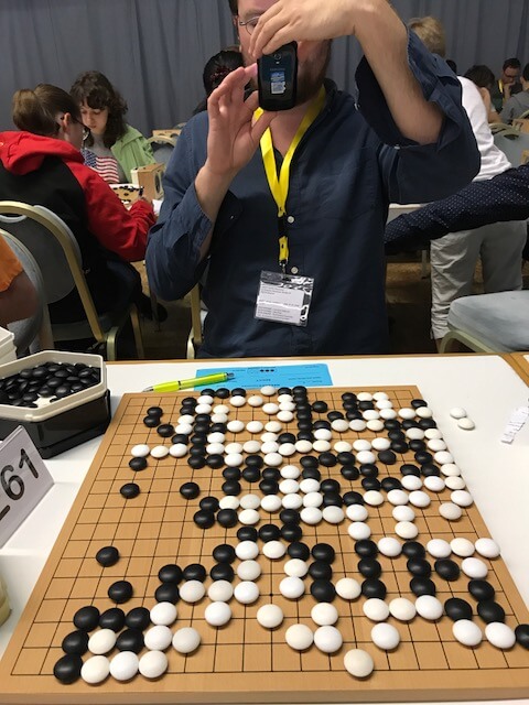 Aber zurück zum europäischen Go Kongress bei dem ich die Chance wahr genommen habe am Wochenendturnier in der Mitte des Kongresses teil zu nehmen. Es gibt natürlich eine ganze Reihe von Veranstaltungen, Workshops und auch Turnieren, so dass ein Wochenende eigentlich viel zu kurz ist. Leider ging es zeitlich nicht anders. Wo wir gerade bei Veranstaltungen sind soll natürlich nicht unerwähnt bleiben, dass die codecentric – zur Freude von Georg und mir – das Rengo-Turnier gesponsert hat. Rengo ist eine Teamvariante von Go, doch dazu später mehr, denn wir sind Samstag Abend noch in den Genuss unserer eigenen Rengo-Partie gekommen.