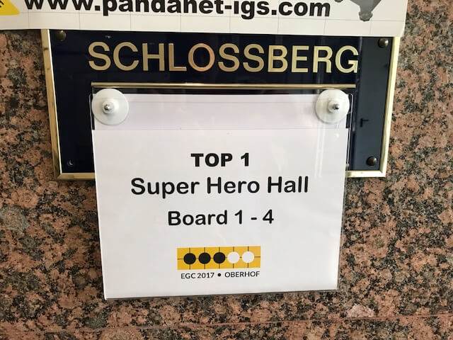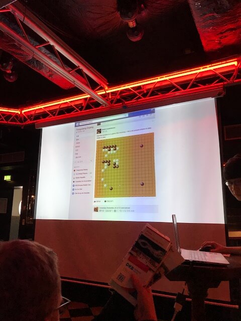 Es geht zum Mittagessen, doch auch das hilft leider nicht und so gehen auch die anderen beiden Partien des Tages verloren. Für Georg läuft es mit einem Sieg etwas besser, allerdings ja auch auf einem ganz anderen Niveau ;-). Zwischen der zweiten und der dritten Runde konnten wir noch den Besuch bei einer kurzen Session einlegen: „Die Go-Avengers“. Dort wurden grundlegende Techniken sehr kurzweilig vorgetragen. Es erscheint einem auch immer alles völlig logisch, bis man dann versucht es in seinen eigenen Spielen anzuwenden.