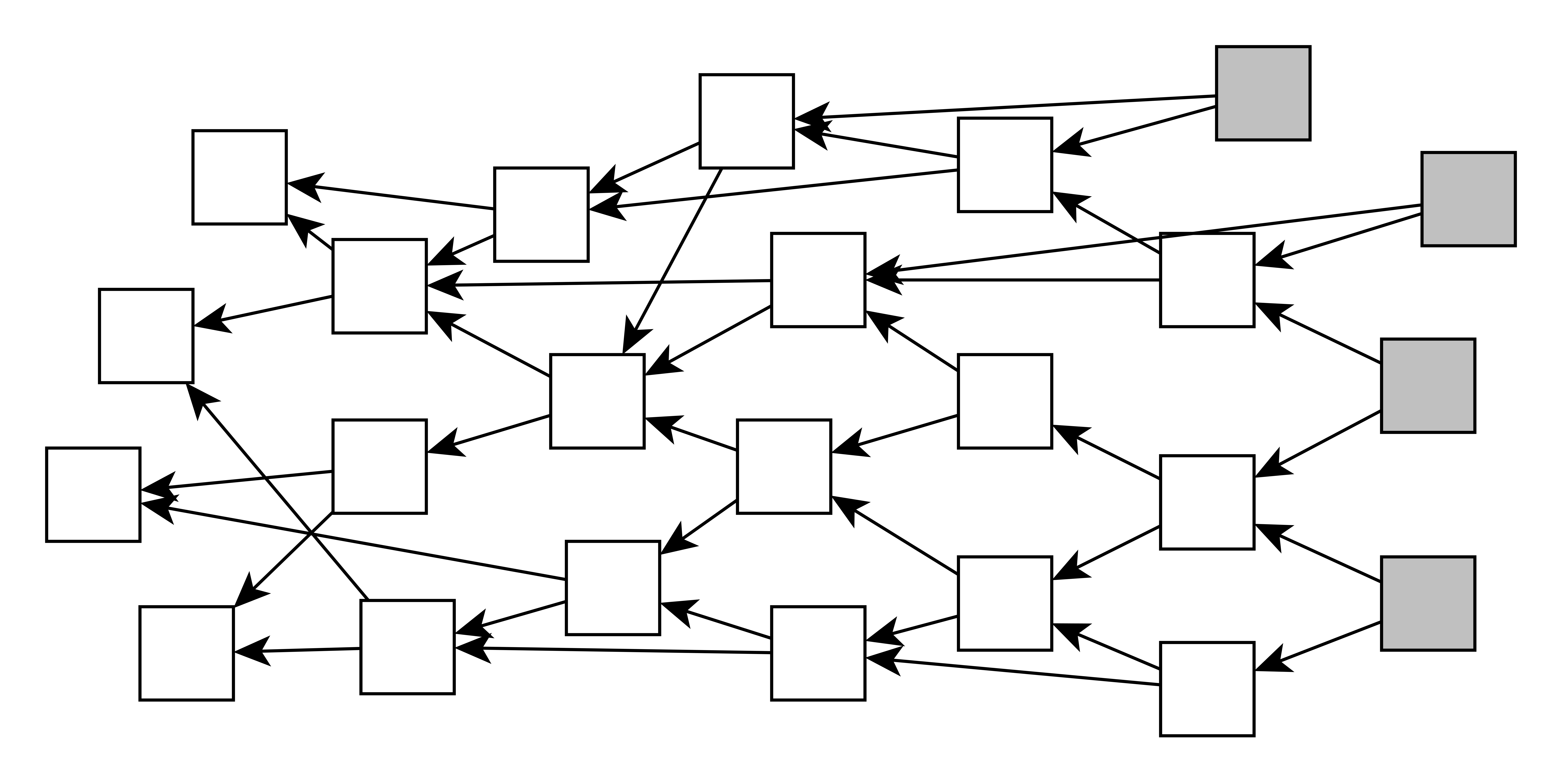 Schritt 2 macht den Tangle besonders. Jede neue Transaktion referenziert, also bestätigt, zwei vorherige Transaktionen. Dies kreiert die Architektur des Tangle. Wir können uns den Tangle als einen Graphen vorstellen. Die Knoten des Graphen sind Transaktionen. Die Kanten eines Knoten zeigen jeweils auf die bestätigten Transaktionen. Von jedem Knoten gehen also zwei Kanten aus. Wie in Abbildung 1 illustriert, entsteht auf diese Weise ein gerichteter, azyklischer Graph, keine Kette von Blöcken wie bei der Blockchain.